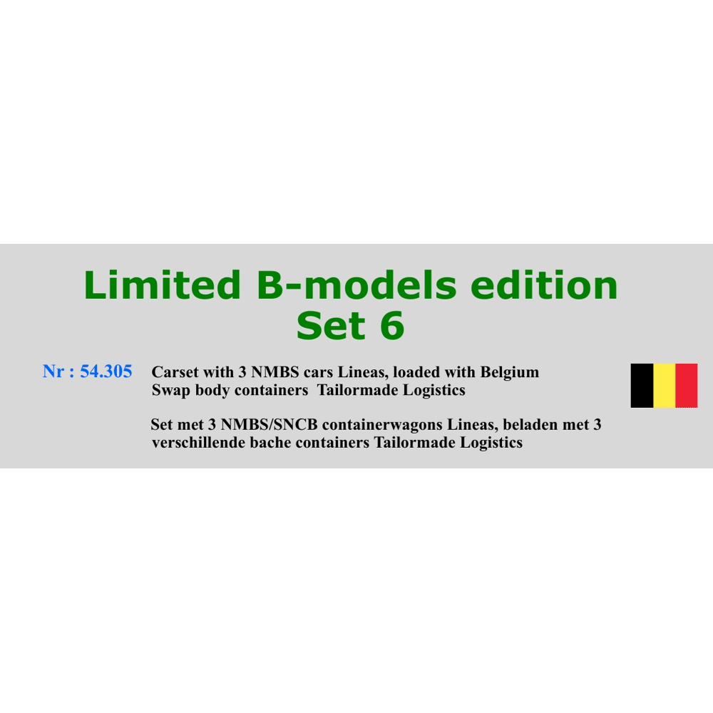 B-models 54305 / Set met 3 NMBS containerwagons Lineas, beladen met 3 bache containers Tailormade Logistics BM54305